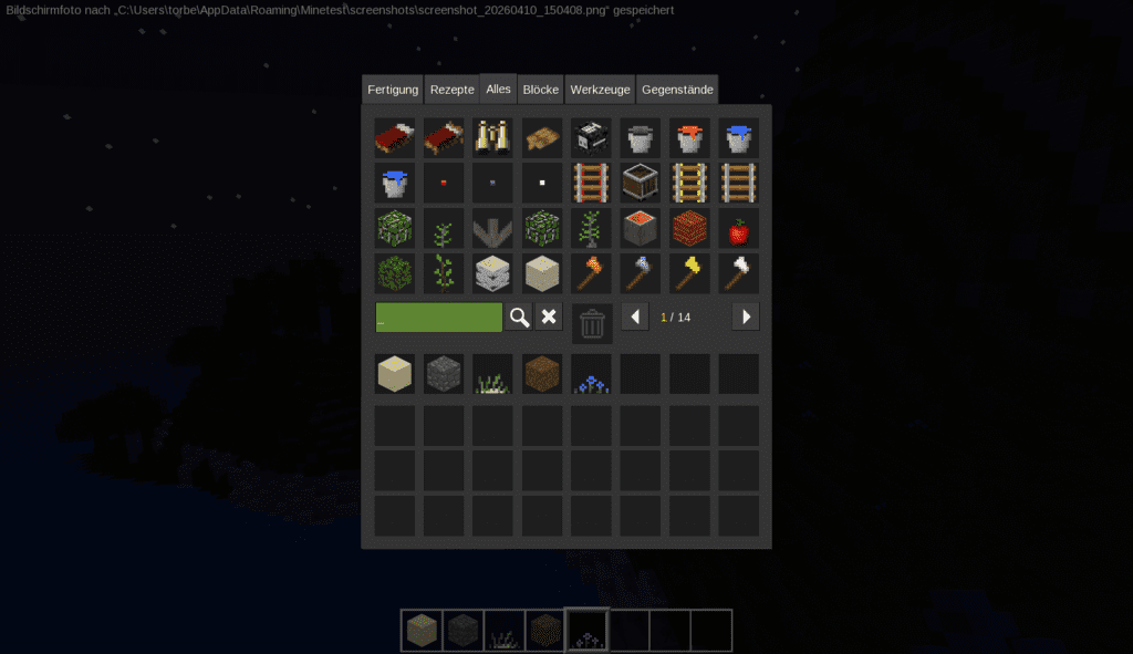 Wir haben Minetest ausprobiert. Minetest kannst du kostenlos spielen. Mintest ist so ähnlich wie Mincraft. Wir wollten heraus finden ob das genauso gut ist wie Minecraft. Du kannst das auch kostenlos auf dem Tablet spielen. Die Grafik ist eine 8/10. Die Geschwindigkeit ist 5/10. Der Schwerigkeitsgrad also wie Schnell man ist und es hat eine 4/10. Die Geschichte ist eine 7/10 . Die Ähnlichkeit zu Minecraft ist eine 9/10. Man kann das ruhig Spielen wegen für Minecraft muss man geld aus geben.